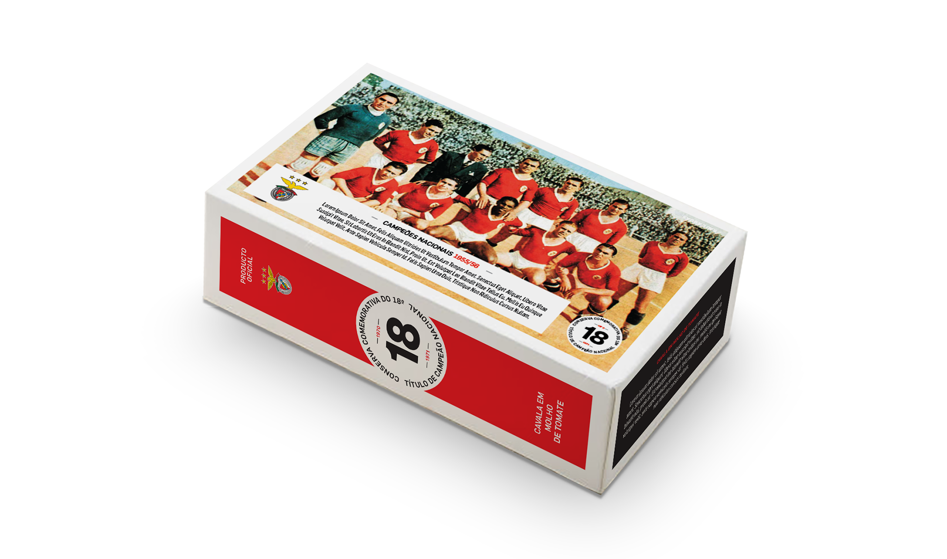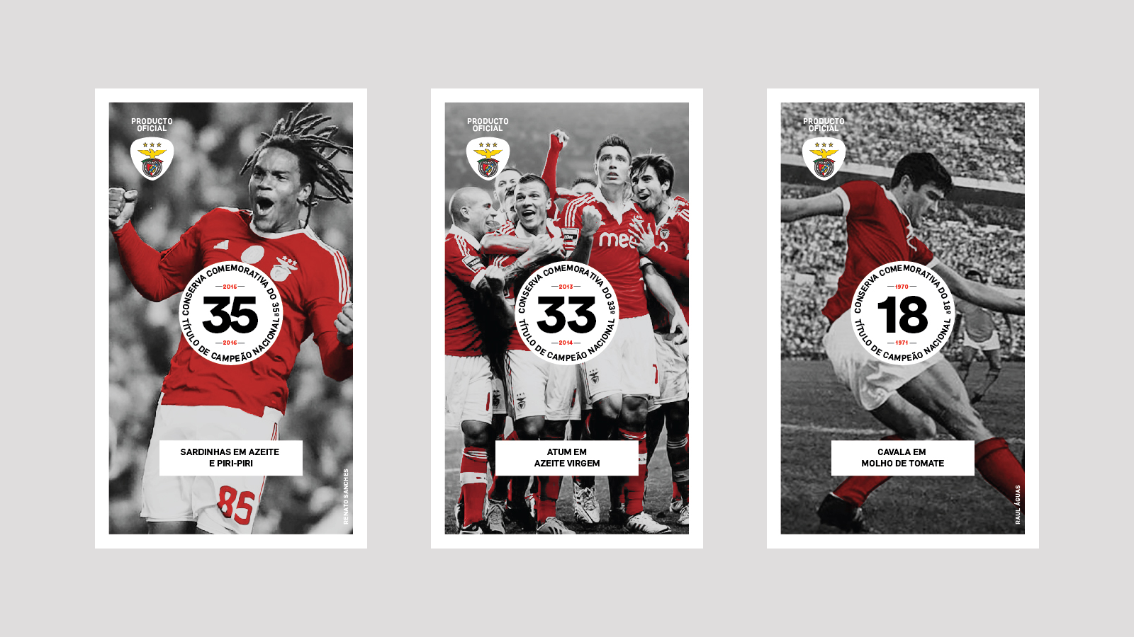 Packaging for a Benfica can fish brand developed for Loja das Conservas. This collection features 35 unique packs celebrating every championship won by the team in Portugal